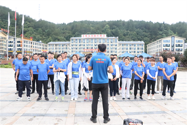 游戏过后全体人员在教练的带领下进行五公里徒步的训练项目。在锻炼大家体魄的同时还可以好好欣赏一下景区的美景。五公里的路程大家很轻松的就完成了。