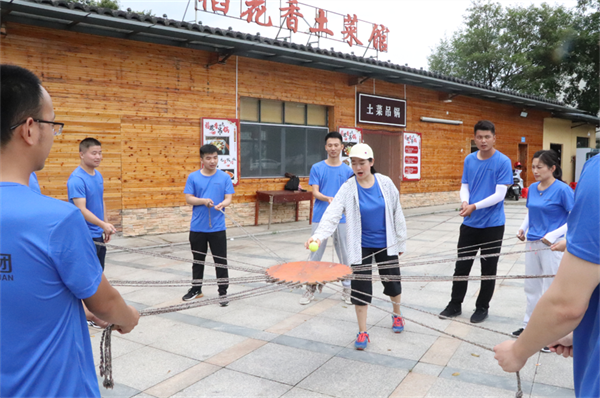 图为拓展训练中大家合作完成小游戏。