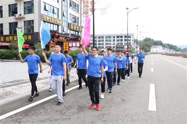 山路上大家互相帮扶,互相鼓励,步伐较慢的同事都是被大家关心着鼓励着。