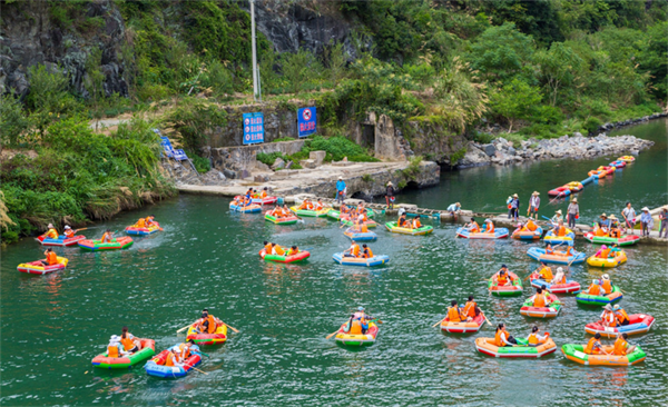 下午在徒步过后陶总还带领大家体验了刺激的大别山漂流,大约2个小时的漂流路线,大家感受了一次激流勇进的刺激,大家两两一船,时而划船,时而泼水打闹,玩的非常酣畅淋漓。