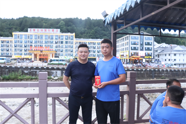 傍晚在风景优美的溪边给大家准备了烤全羊等丰盛的晚餐,席间陶总准备了三个现金红包,对在本次团建活动中表现突出的三位人员进行了现金奖励,嘉奖他们在团建中积较的态度和主动照顾帮助他人的团队精神。