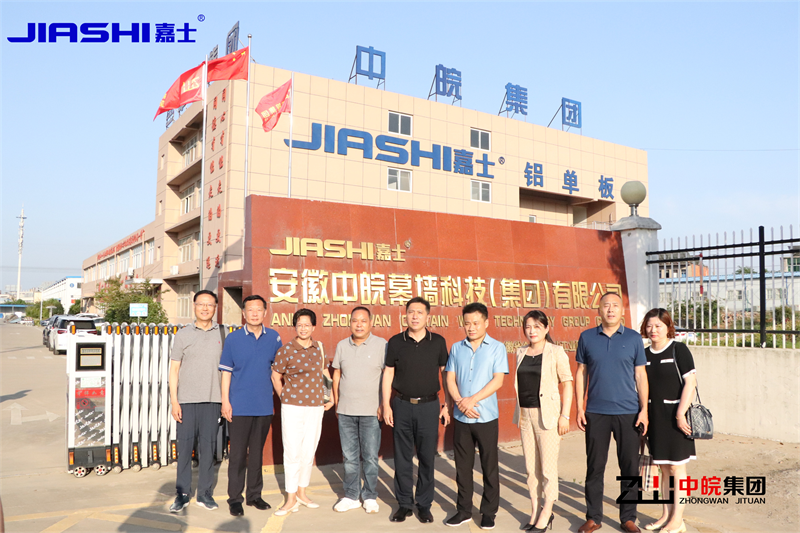 2022年6月17日安徽大剧院季总、张总等领导来到了头号玩家官网登录入口集团旗下-安徽嘉士新型材料有限公司铝单板生产基地。